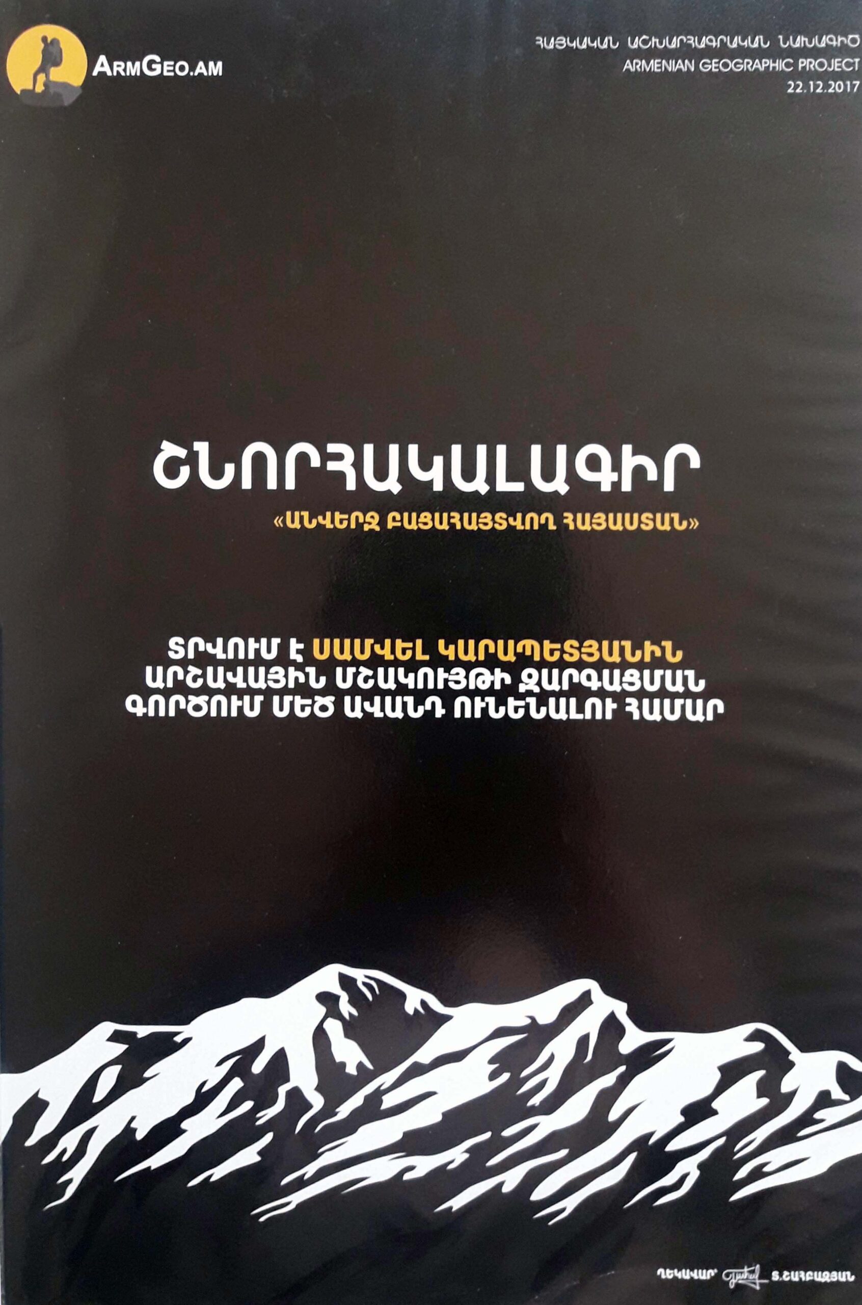 | Վերնագիր | «ԱՆՎԵՐՋ ԲԱՑԱՀԱՅՏՎՈՂ ՀԱՅԱՍՏԱՆ» ՇՆՈՐՀԱԿԱԼԱԳԻՐ |