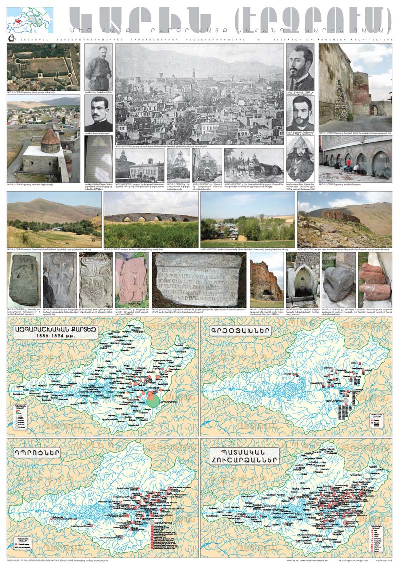 Համառոտ տեղեկություն | Պաստառը ներկայացնում է Կարին (Էրզրում) գավառի բնաշխարհը, բնակավայրերը, առավել պահպանված պատմական հուշարձանները, տեղեկություններ տվյալ գավառից հայտնի անձանց մասին և քարտեզներ (ազգաբաշխական, դպրոցների, գրչօջախների և պատմական հուշարձանների): |