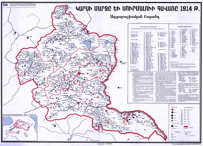 Համառոտ տեղեկություն | Ազգաբաշխական քարտեզը ներկայացնում է Կարսի մարզը և Սուրմալու գավառը 1914 թ. |