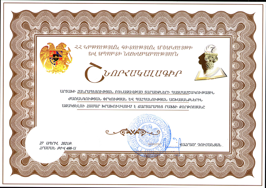 “LAST LESSON” IN ARMEN HAKHNAZARIAN HALL OF RAA FOUNDATION